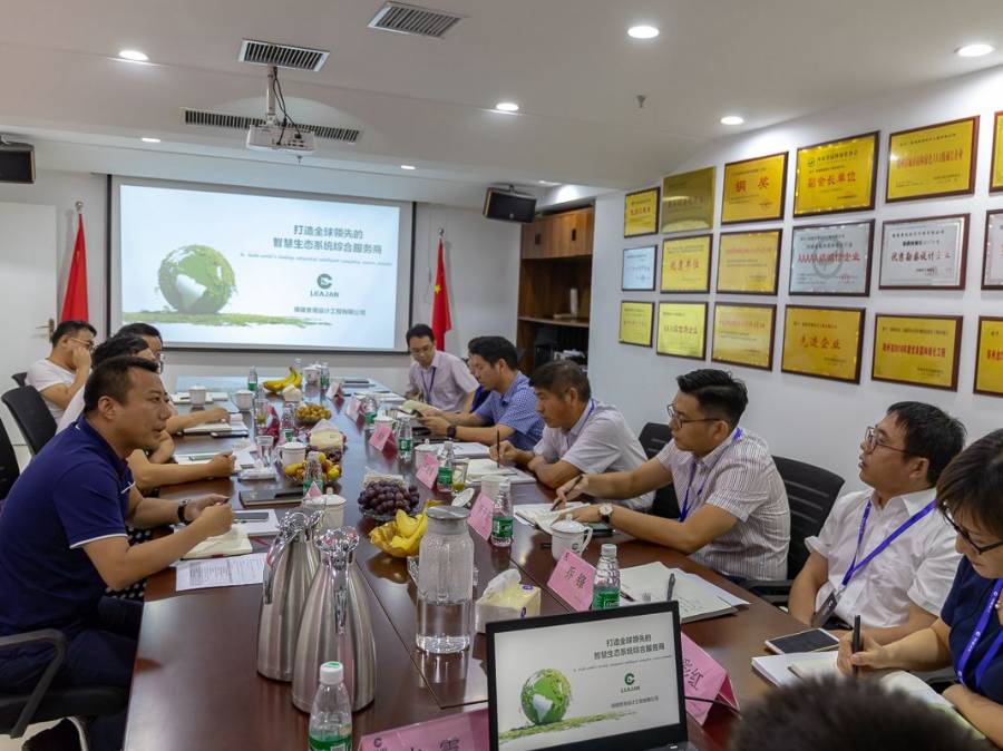 期間,董事長王建發先生從公司使命愿景、戰略方向、組織構架以及業績訂單方面對綠建集團進行了全面、細致的介紹,并同李靜等領導針對行業的生存環境、發展方向展開了熱烈的討論。李靜對綠建公司二十年來取得的成績表示贊賞和肯定,又對園林景觀行業的發展前景充滿樂觀。