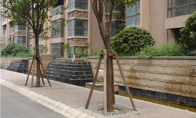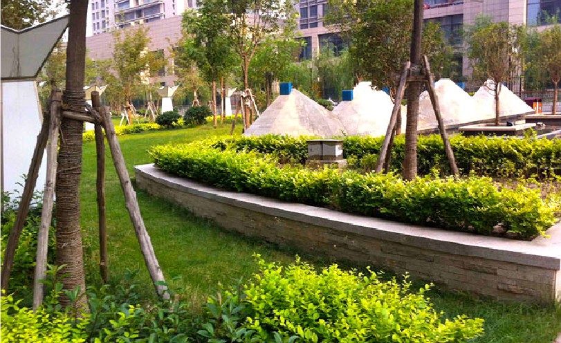 該小區結合現代國際先進的設計理念,是景觀風格與建筑的和諧統一,各種形式的水景,增加小區活力;植物景觀以當地植物為主,提升植物成活率,加強人們的歸屬感。