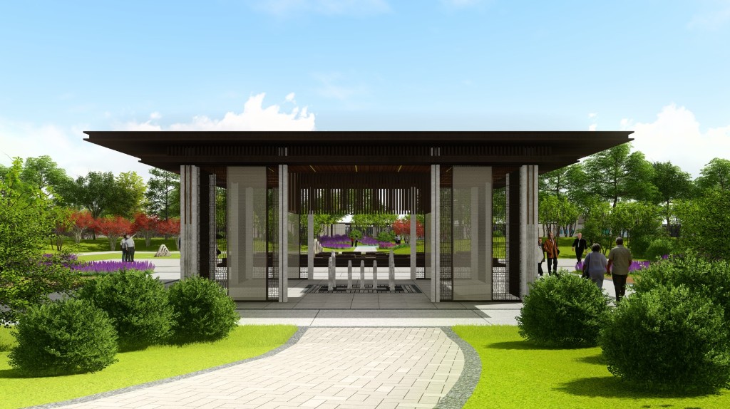 方案依據以人為本設計原則,將傳統文化與現代美學相結合, 采用藏、漏、擋、看等景觀設計手法,使“禮——探——聽——開—— 臨——合——趣——入”景觀脈絡貫穿整個方案設計,將公園劃分為入口景觀區、自然活動區、康體健身區、養生休閑區、水景觀賞區、 禪意空間、生態停車區七大空間。軒臺亭廊,水波連橋,屏風景墻、 枯山水景、石鼓地雕,花木景石等景觀小品穿插交融,增加新鮮活力,使景觀空間豐富多樣,層次分明,打造令人舒適、精致典雅的 生態公園景觀。