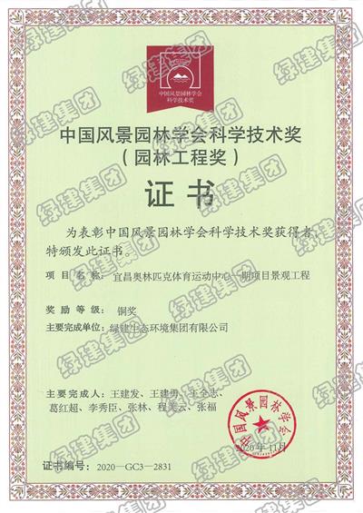 宜昌奧林匹克項目榮獲中國風景園林學會科學技術獎園林工程銅獎
