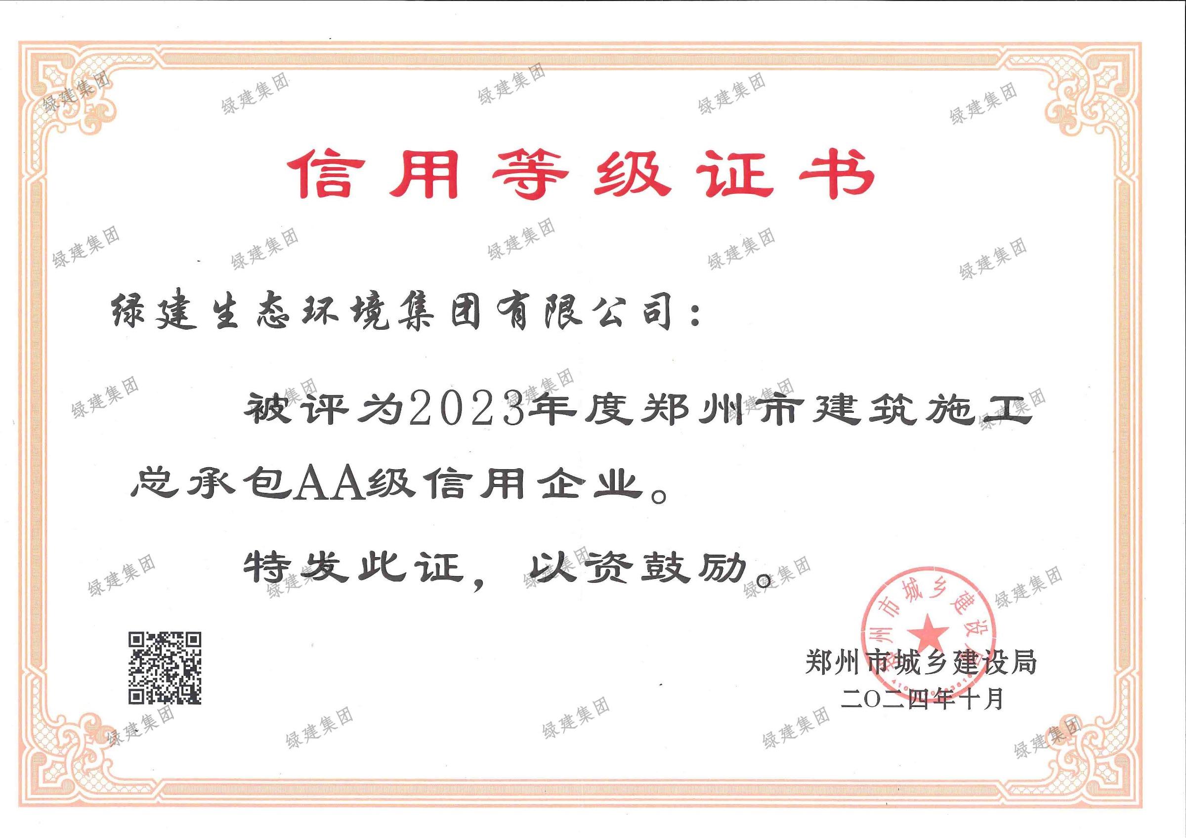 2023年度鄭州市建筑施工總承包AA級(jí)信用企業(yè)